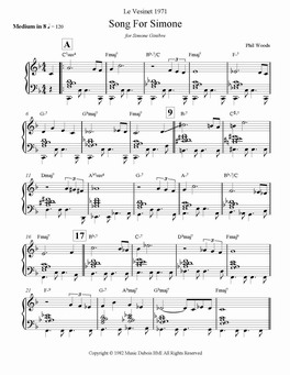 "Composed for my European savior and agent, Simone, wife of Jazz Magazine editor Jean-Louis Ginibre. These two people were chiefly responsible for the European Rhythm Machine and its success. I am forever in their debt.